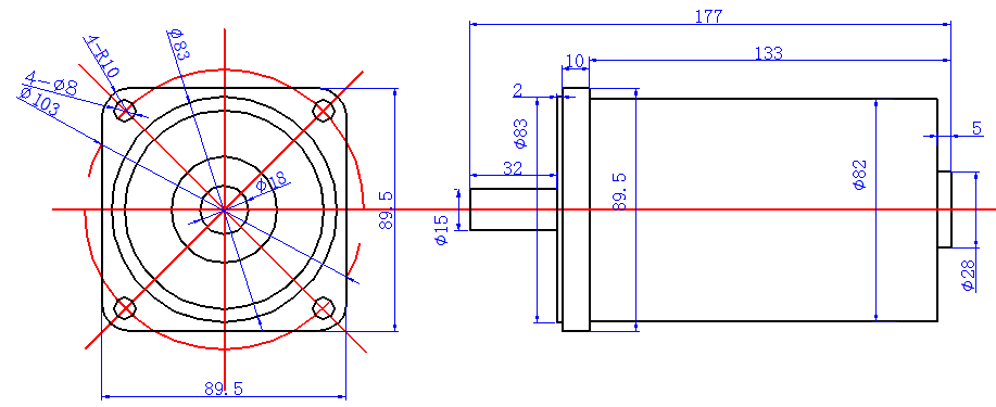 | 型號 | 電壓 (V)DC | 額定電流 (A) | 額定轉(zhuǎn)速 (r/min) | 額定功率 (W) | 額定扭矩 (N.m) | 長度 (mm) |